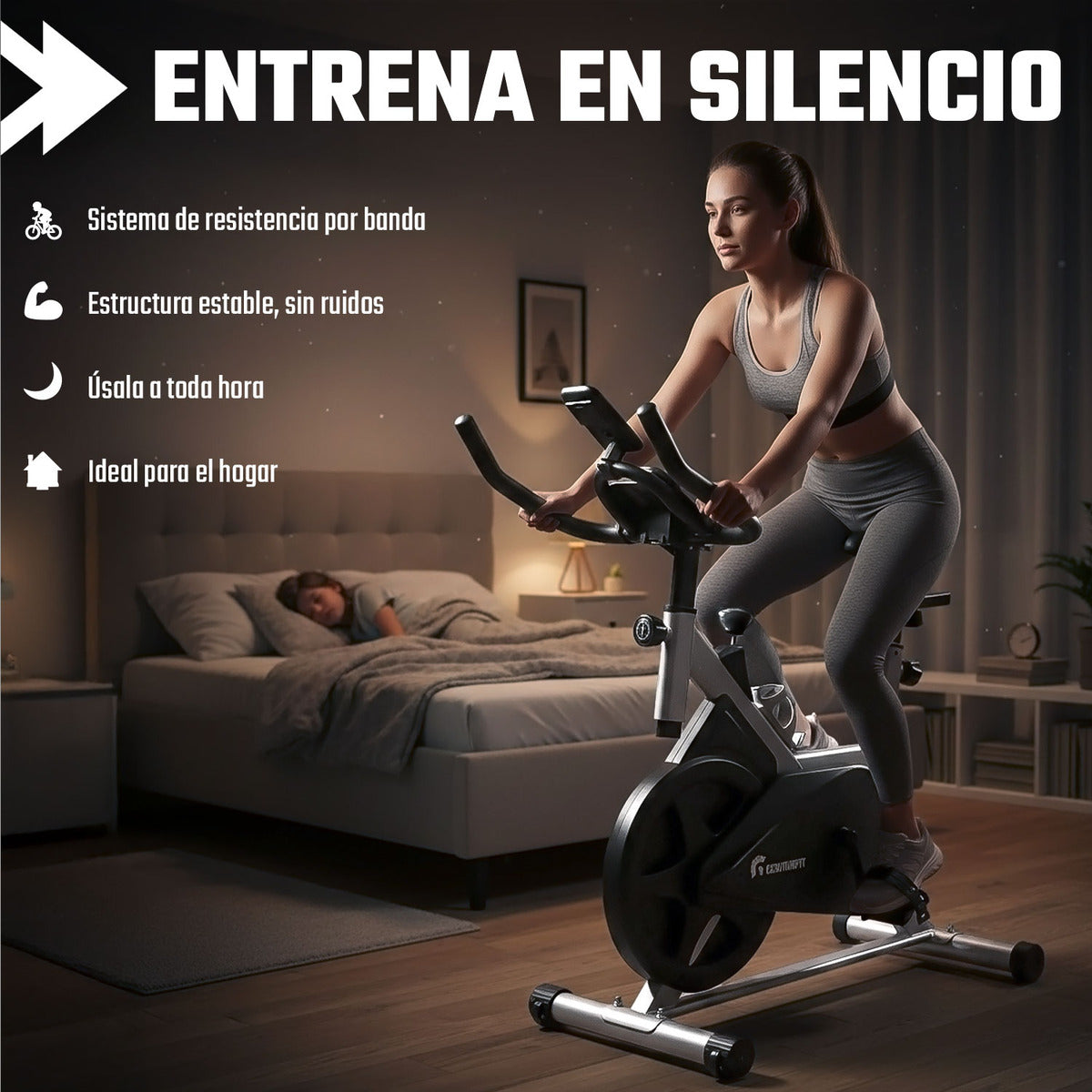 Incluye soporte para celular, tablet y botella de agua, permitiendo mantener hidratación y seguimiento visual durante el entrenamiento. Sus pedales con correas ajustables aseguran una sujeción firme, mejorando el control y la eficiencia del pedaleo.