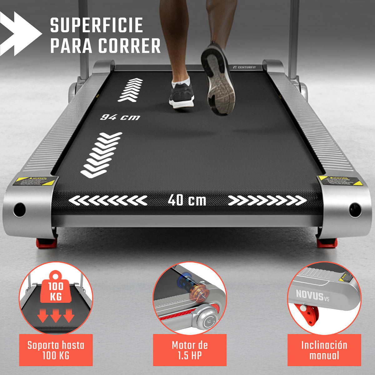 • Superficie para correr: 94 x 40 cm