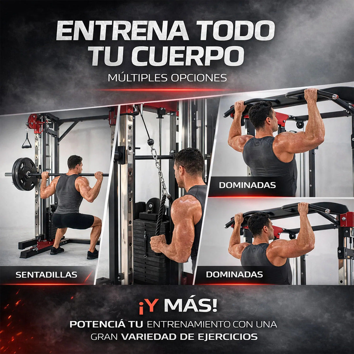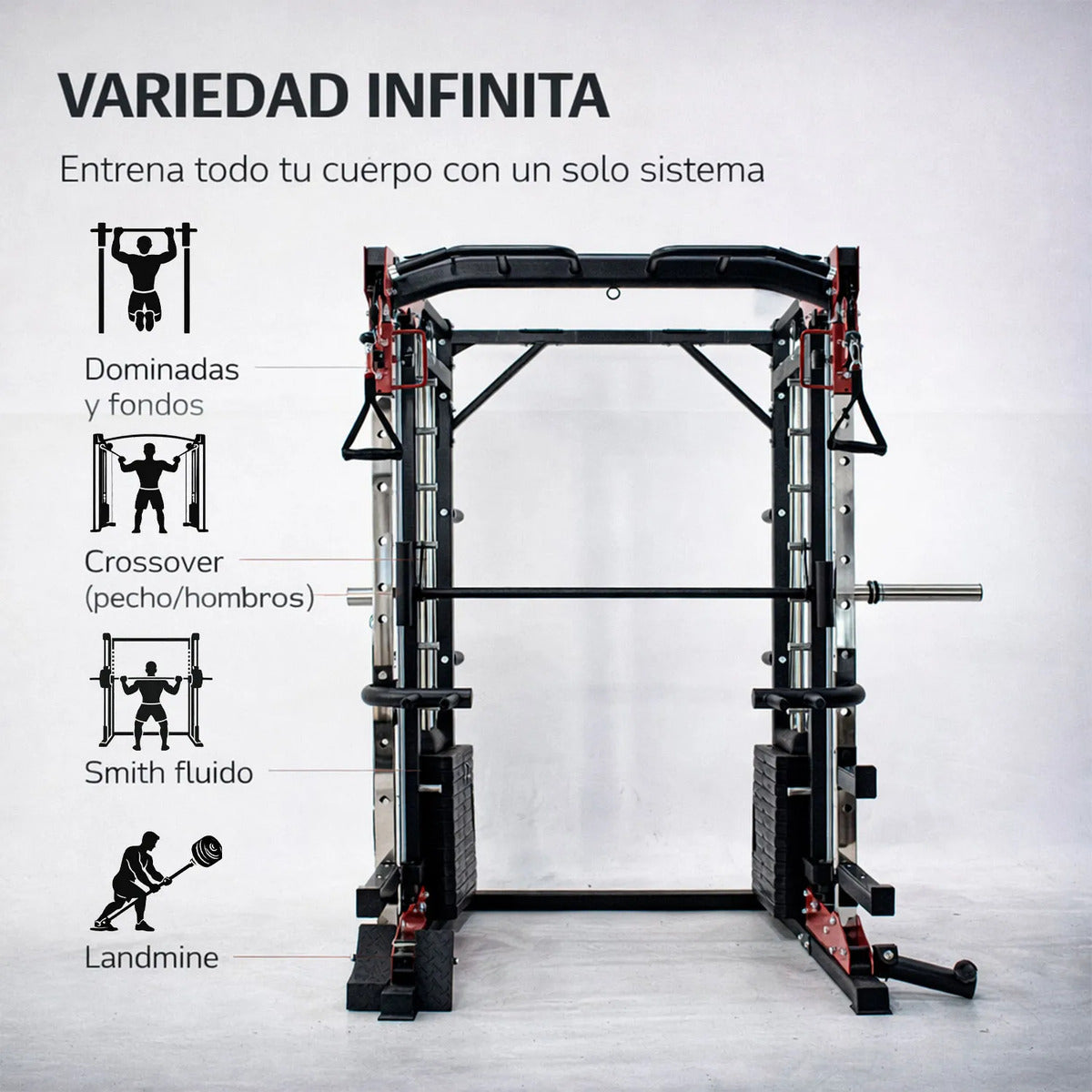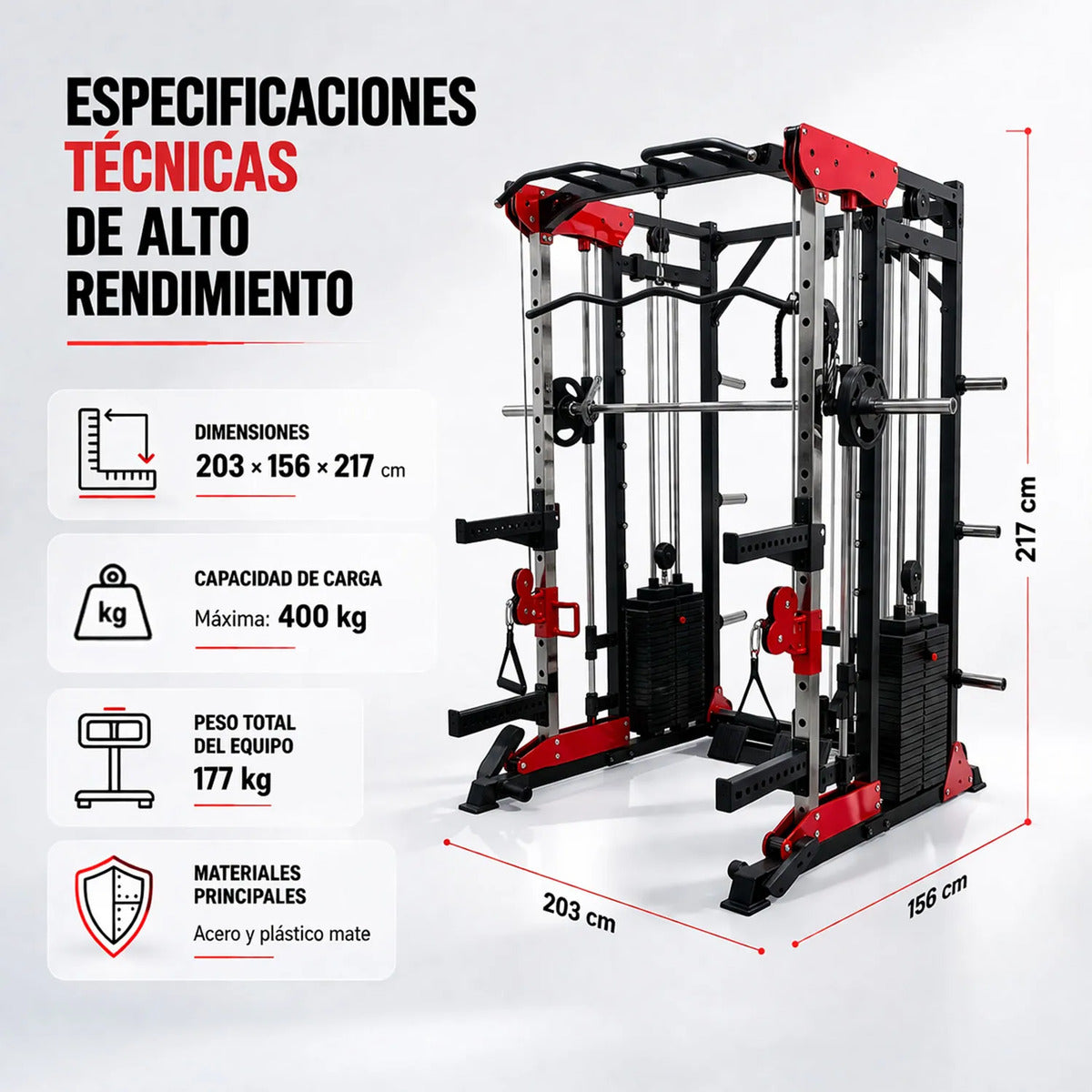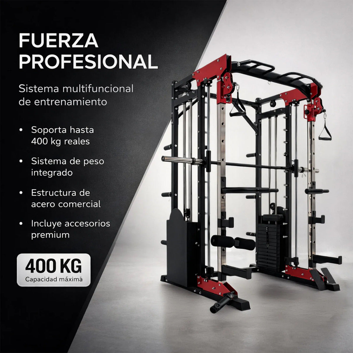 Este equipo está diseñado para ofrecer una experiencia de entrenamiento completa, combinando resistencia, versatilidad y funcionalidad en un solo sistema.