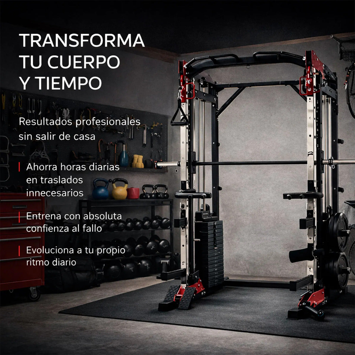 Convierte tu espacio en un gimnasio profesional y entrena sin límites.