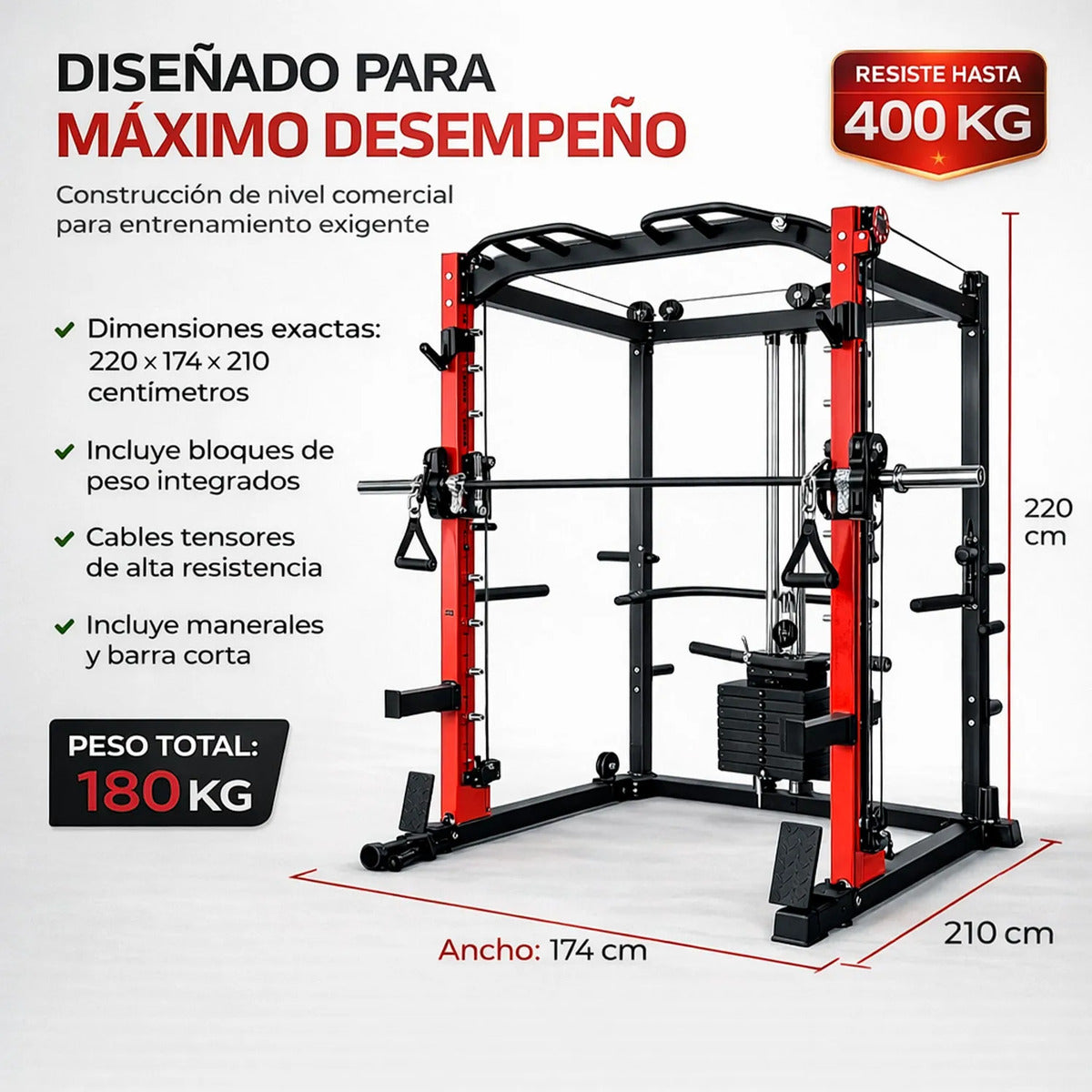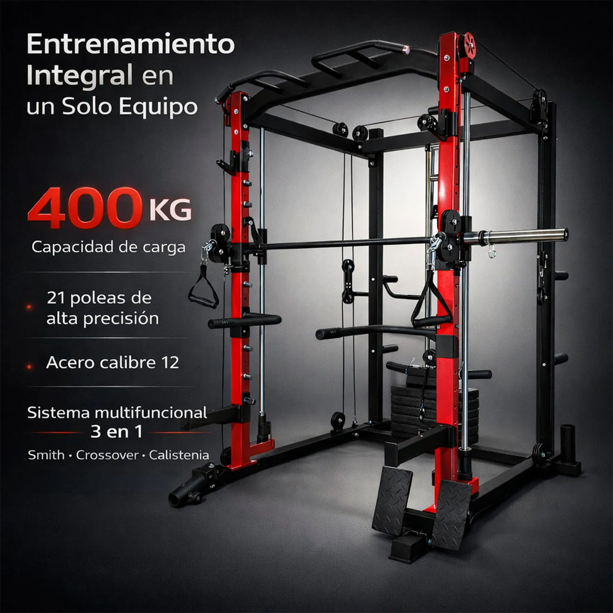 Este equipo transforma cualquier espacio en un centro de entrenamiento integral, permitiendo trabajar todos los grupos musculares de forma eficiente. Gracias a su diseño funcional, podrás realizar rutinas completas sin necesidad de múltiples máquinas, optimizando tiempo, espacio y resultados en cada sesión.